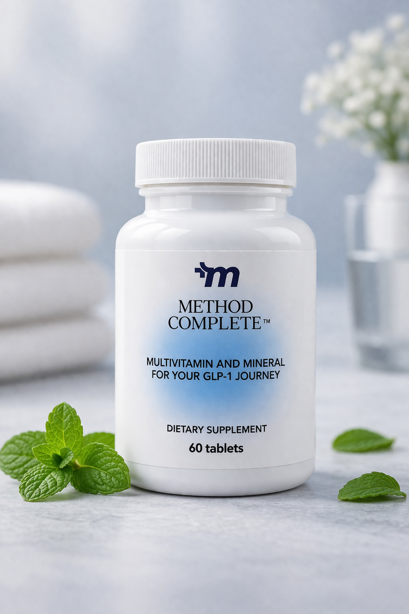 Clinician-CreatedMethod Complete MultivitaminA multi vitamin and mineral thoughtfully created to close nutrient gaps for health optimization, improve natural GLP-1 production, and prevent GLP-1 side effects.